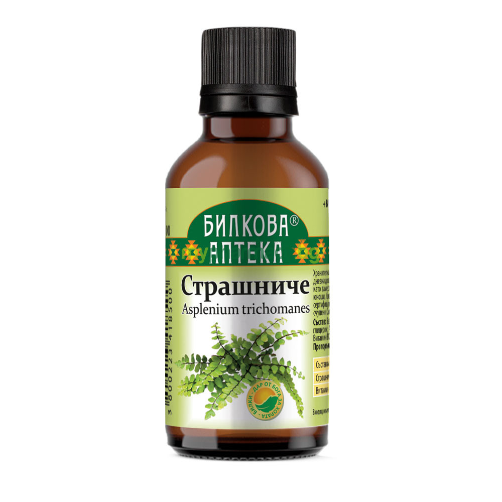 Bioherba Тинктура Страшниче е растителен екстракт със страшниче (Asplenium trichomanes L.) и добавен витамин B12, който подпомага нормалното функциониране на нервната система.