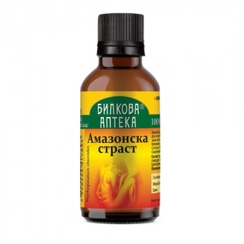 Тинктурата Амазонска страст от марката Биохерба представлява високоефективен природен еликсир за подобряване на сексуалната функция и общия жизнен тонус. Тази иновативна формула съдържа концентриран екстракт от екзотичното дърво Муира Пуама, което е известно още като виаграта на Амазония. Продуктът е създаден да повишава либидото както при мъжете, така и при жените, като стимулира притока на кръв към органите в малкия таз. Приемът на тази хранителна добавка оптимизира нивата на половите хормони и подобрява значително физическата издръжливост. Освен положителното си въздействие върху сексуалността, екстрактът тонизира централната нервна система, намалява усещането за стрес и изостря паметта. Течната форма гарантира бързо и пълноценно усвояване на активните вещества от организма.