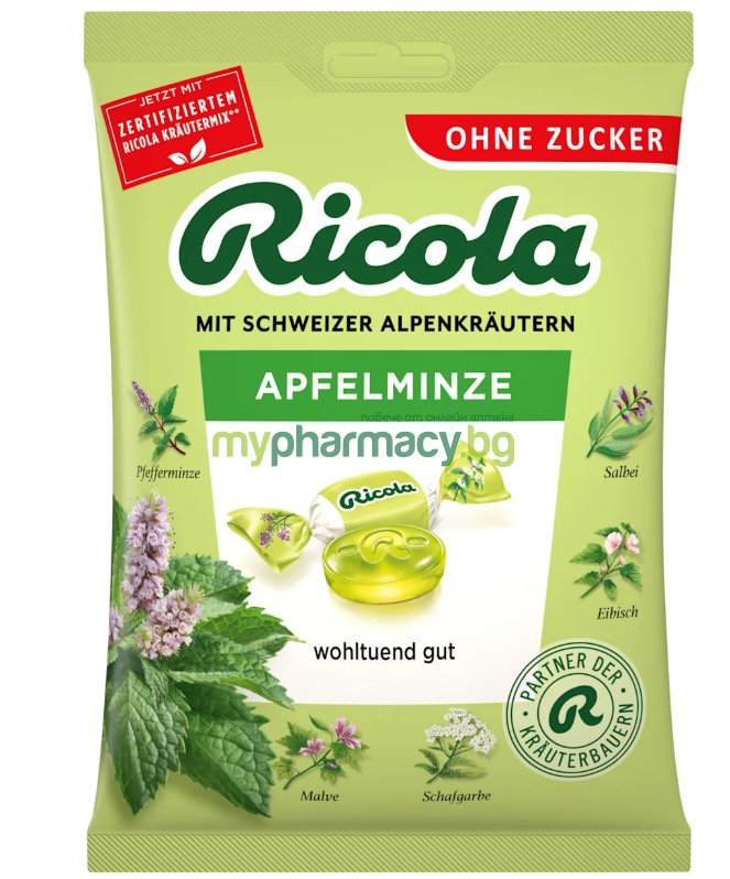 РИКОЛА ЯБЪЛКА И МЕНТА Билкови бонбони без захар 75мг
