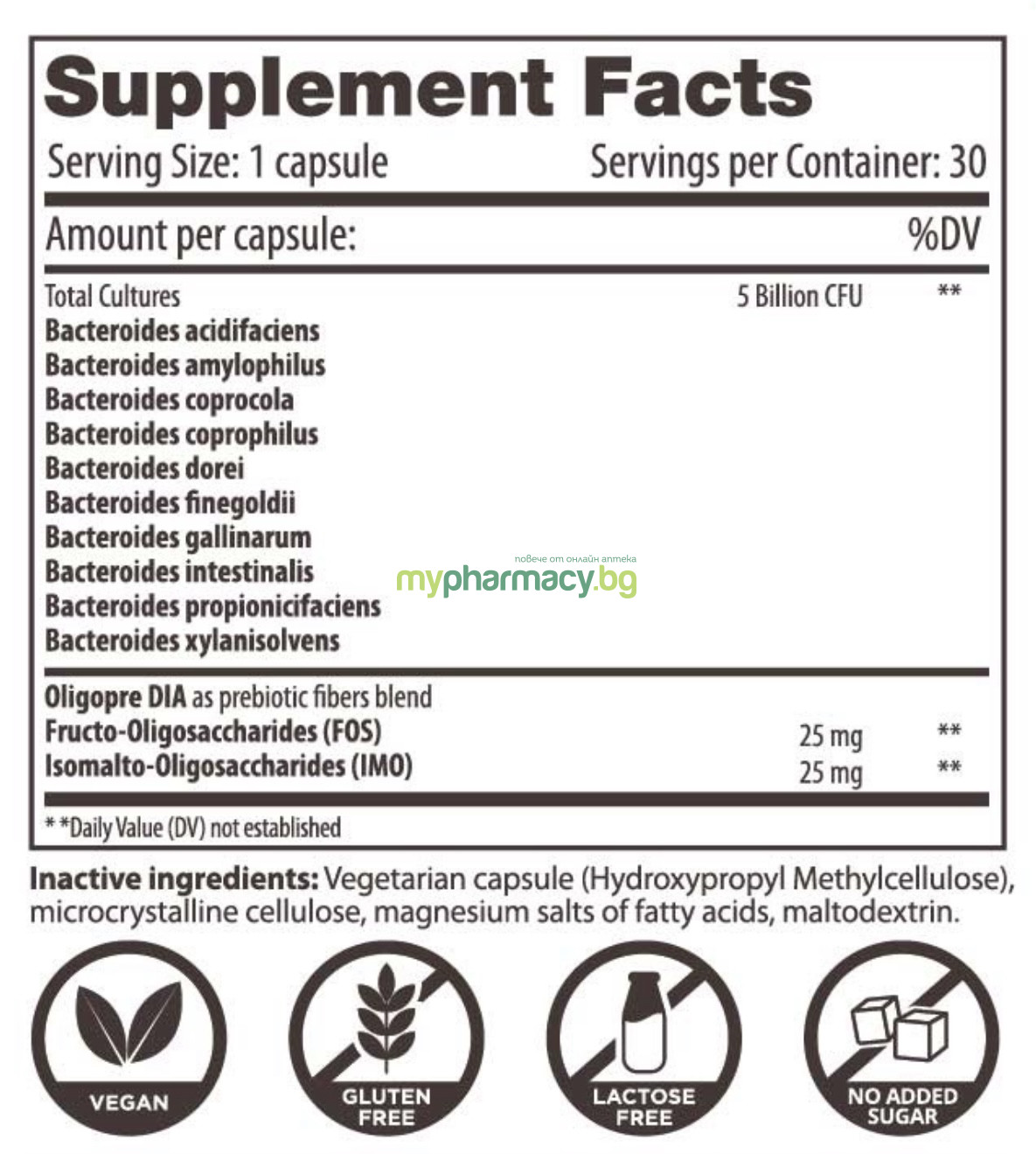 Хранителна добавка за баланса на чревната микрофлора и цялостното здраве на храносмилателната система.