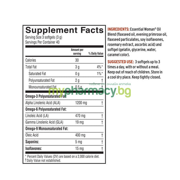 БАРЛИЙНС ОСНОВНИ МАСТНИ КИСЕЛИНИ ЗА ЖЕНИ / BARLEANS ESSENTIAL WOMAN SUPPLEMENT капс. 1000мг х 120