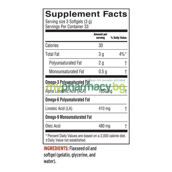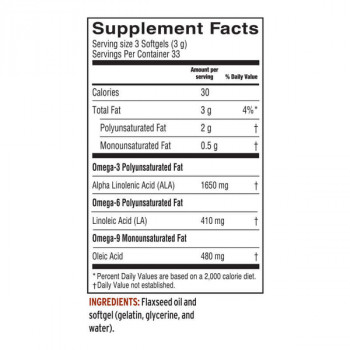 Омега-3 полиненаситени киселини: Алфалинолова киселина (LNA): 1650 мг Омега-6 полиненаситени киселини: Линолова киселина (LA): 410 мг Омега-9 полиненаситени киселини: Олеинова киселина: 480 мг |