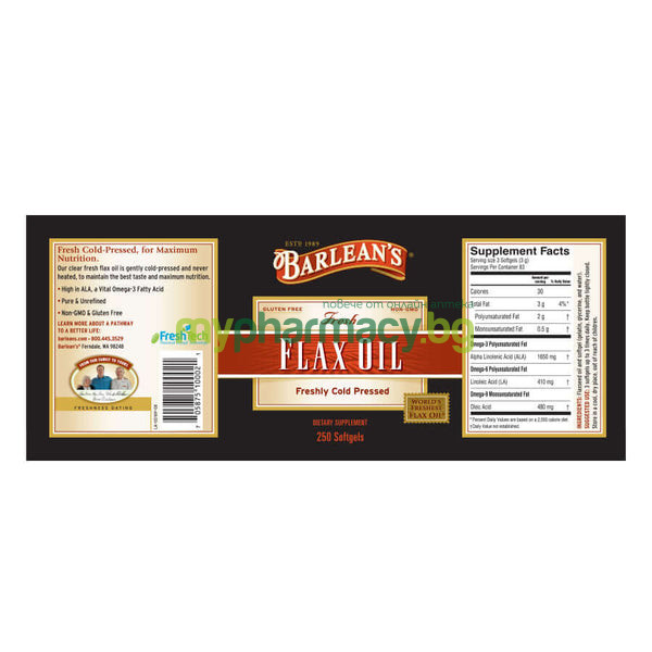 БАРЛИЙНС ФЛАКС ОЙЛ / BARLEANS FLAX OIL Масло от семена на лен капс. х 250