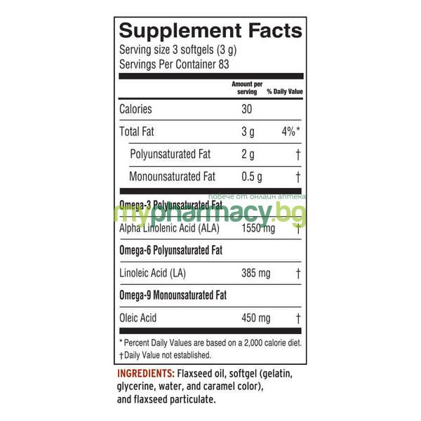 - Омега-3 полиненаситени киселини: Алфалинолова киселина (LNA): 1 550 мг