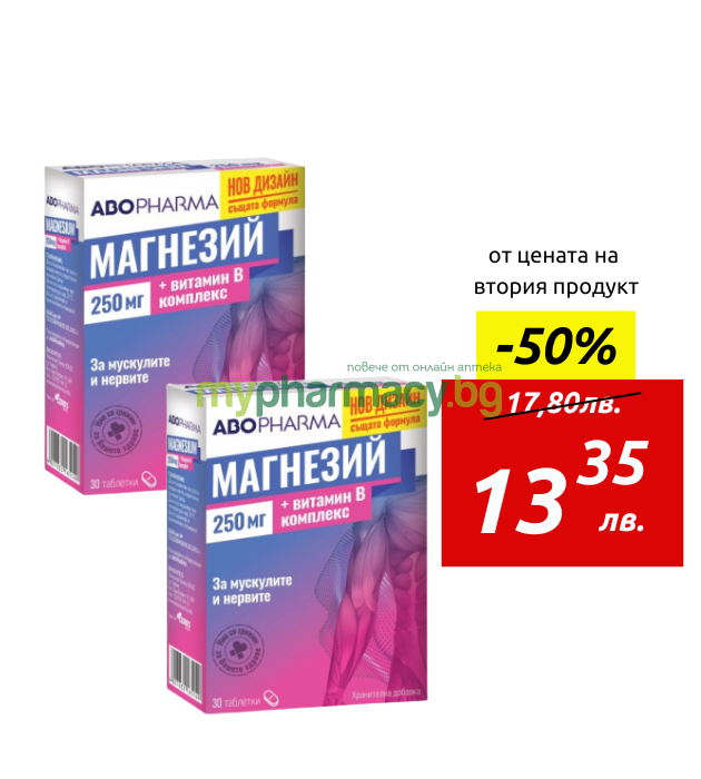АБОФАРМА МАГНЕЗИЙ + ВИТАМИН Б КОМПЛЕКС за мускулите и нервите табл. x 30 x 2