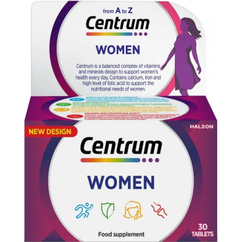 Centrum® за жени е персонална грижа за женското здраве и подпомага енергията, имунитета и обмяната на веществата. Освен това, този мултивитаминен комплекс съдържа хранителни вещества, които помагат на жените да поддържат здрав вид и съдържа високи нива на витамин Д за здрави кости. Осигурява основни хранителни вещества, и благодарение на над 30 години практика и опит на фирмата производител в хранителната наука, Ви донася най-пълната гама мултивитамини за добро женско здраве.