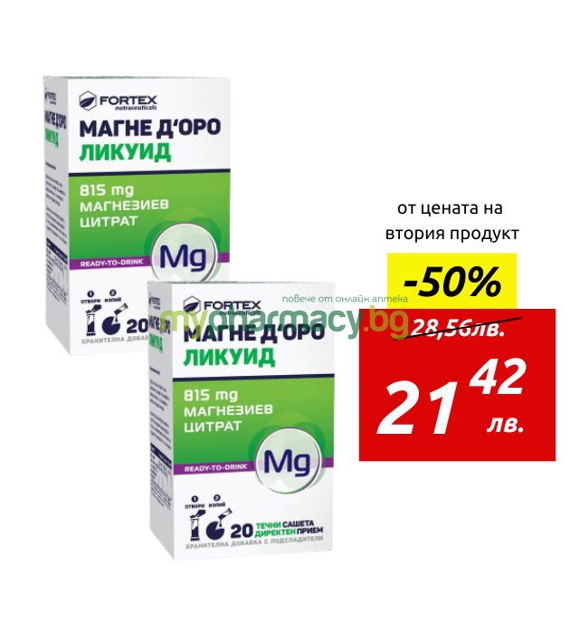 Магне Д'оро Ликуид са течни сашета за директен прием, които доставят лесноусвоим магнезий и осигуряват оптималното необходимо дневно количество за организма.