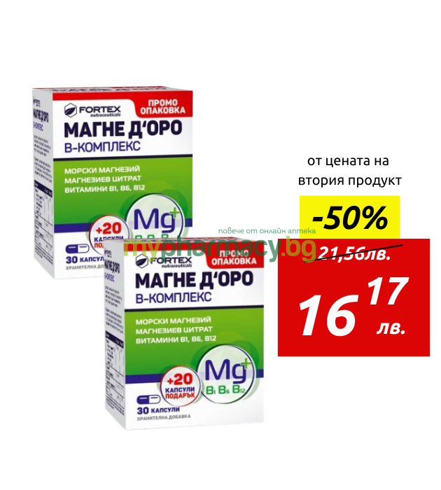 Магне Доро В-комплекс осигурява на организма оптималното дневно количество магнезий (комбинация от натурален морски магнезий и магнезиев цитрат) и витамини oт В-групата.