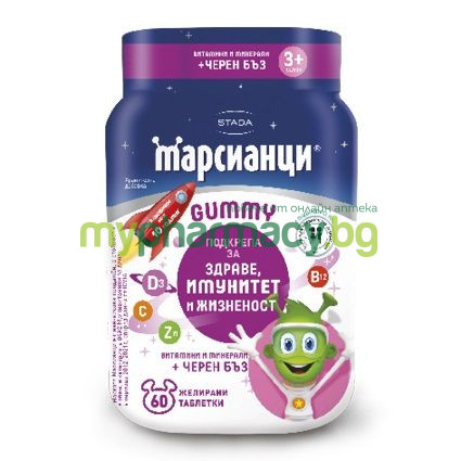 Мултивитамини за деца, под формата на вкусни желирани марсианчета с черен бъз, съдържащи препоръчваната дневна доза от витамини, необходими за нормалния физиологичен растеж и развитие на детето.