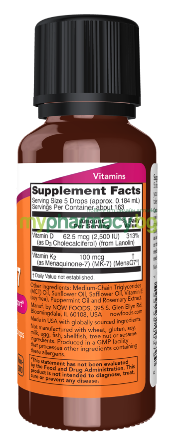 НАУ ФУУДС ВИТАМИН Д3 + К2 течен 30мл