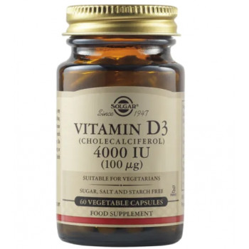 Solgar Vitamin D3 4000 IU е висококачествена хранителна добавка, разработена от американската компания Solgar, която предлага витамин D в неговата най-биологично достъпна форма, холекалциферол (D3). Витамин D3 е мастноразтворим витамин, синтезиран в кожата под въздействие на слънчева светлина, чийто прием чрез добавки е особено важен в есенно-зимния период, когато естественото му производство в организма спада. Редовната употреба подкрепя правилното усвояване на калций и фосфор, като по този начин допринася за запазване на костната плътност и намаляване риска от остеопороза. Solgar произвежда добавките си в САЩ от подбрани съставки, без изкуствени оцветители, консерванти, подсладители или ненужни пълнители. Продуктът е подходящ за дневна употреба при установен дефицит или като профилактика при хора с ограничено излагане на слънце.