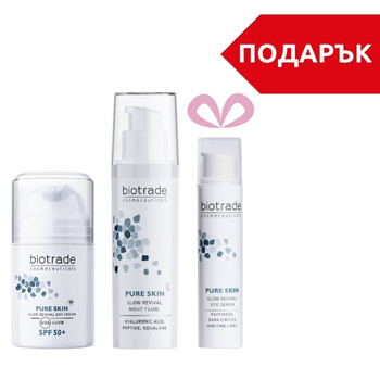БИОТРЕЙД ПЮЪР СКИН Озаряващ дневен SPF50+ и нощен флуид с околоочен серум подарък