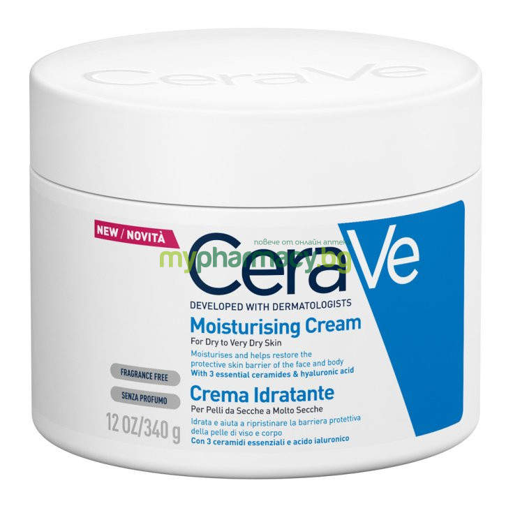 СЕРАВЕ Хидратиращ крем за лице и тяло хидратира през целия ден и помага за възстановяването на защитната бариера на кожата на лицето и тялото.