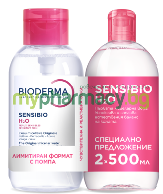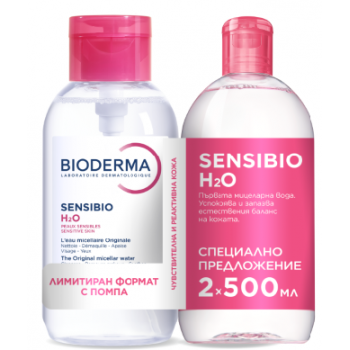 БИОДЕРМА СЕНСИБИО КОМПЛЕКТ Мицеларна вода 500мл / Мицеларна вода помпа 500мл