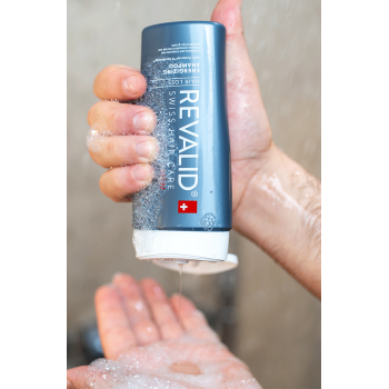 Ревалид стимулиращ шампоан против косопад за мъже, нежно почивства и подхранва косата, реактивирайки фоликулите, отговорни за нейния растеж. Стимулира растежа на косата, като същевременно намалява косопада.
