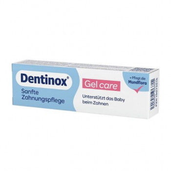 Dentinox Care гел е специално разработен продукт за грижа за венците на бебета по време на никнене на първите зъбки. Формулата е създадена с високо съдържание на съставки от естествен произход и осигурява нежно и ефективно облекчение на дискомфорта и раздразнението. Гелът подпомага поддържането на здрава устна кухина още от най-ранна възраст, като съчетава успокояващо, защитно и хидратиращо действие. Активните съставки действат синергично, за да намалят възпалението и чувствителността на венците, както и да подпомогнат баланса на оралната микрофлора.