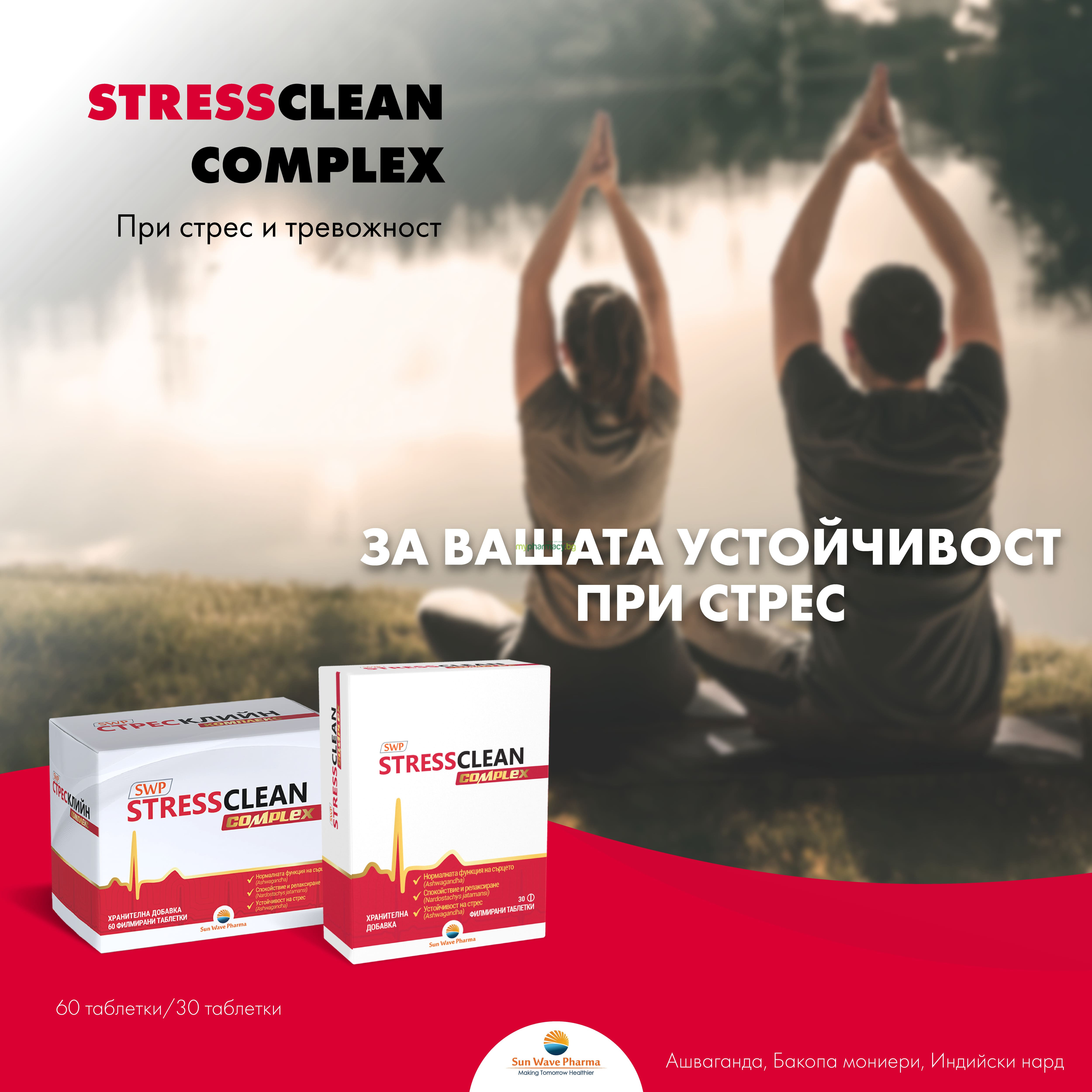 Стресклийн Комплекс спомага за намаляване на умората и изтощението от физическо и психическо претоварване, като допринася за нормално функциониране на нервната и сърдечно-съдовата система.
