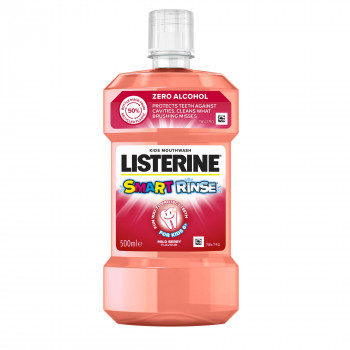 Listerine Smart Rinse Berry е специализирана вода за уста, разработена с грижа за денталното здраве на децата над 6-годишна възраст. Иновативната формула без алкохол и захар осигурява дълбоко почистване на устната кухина, като прониква в труднодостъпните зони, които четката за зъби често пропуска. Продуктът съдържа натриев флуорид, който активно укрепва зъбния емайл и доказано намалява риска от образуване на кариеси с до 40% повече в сравнение със самостоятелното миене на зъбите. Благодарение на активната съставка цетилпиридиниев хлорид, разтворът ефективно неутрализира бактериите, отговорни за натрупването на плака и появата на лош дъх. Приятният вкус на горски плодове прави ежедневната орална хигиена лесна и привлекателна за децата, като съдейства за изграждането на трайни навици.