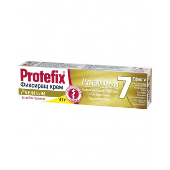 Протефикс Premium фиксиращ крем за зъбни протези е медицинско изделие, разработено за силно и дълготрайно закрепване на протези при ежедневна употреба. Формулата осигурява стабилна фиксация още от момента на поставяне и подпомага увереността при хранене и говор. Кремът се нанася върху влажна протеза и създава надеждна връзка между нея и венците, като предотвратява разместването и намалява риска от проникване на хранителни частици под протезата. Подходящ е при по-слабо задържане на протезата и при повишено слюноотделяне. Формулата е без вкус и не влияе върху вкусовите качества на храната. Не съдържа цинк и е създадена за добра поносимост при ежедневна употреба. Осигурява стабилност без да променя естествената позиция на протезата.